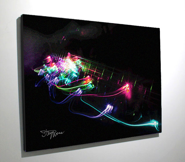 Measuring 40"x 30" on canvas, there are a total of 50 available Fretful pieces in the edition. All are numbered and individually signed by Steve Morse and SceneFour. Each ships with Certificate of Authenticity by SceneFour.