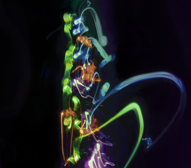 As Morse shreds up the neck, Ballistic visually explodes onto the canvas. A powerful documentation of notes and the shapes formed when light is used to capture, Ballistic boasts a palette of sky blue, red, orange, magenta, and earthy green.